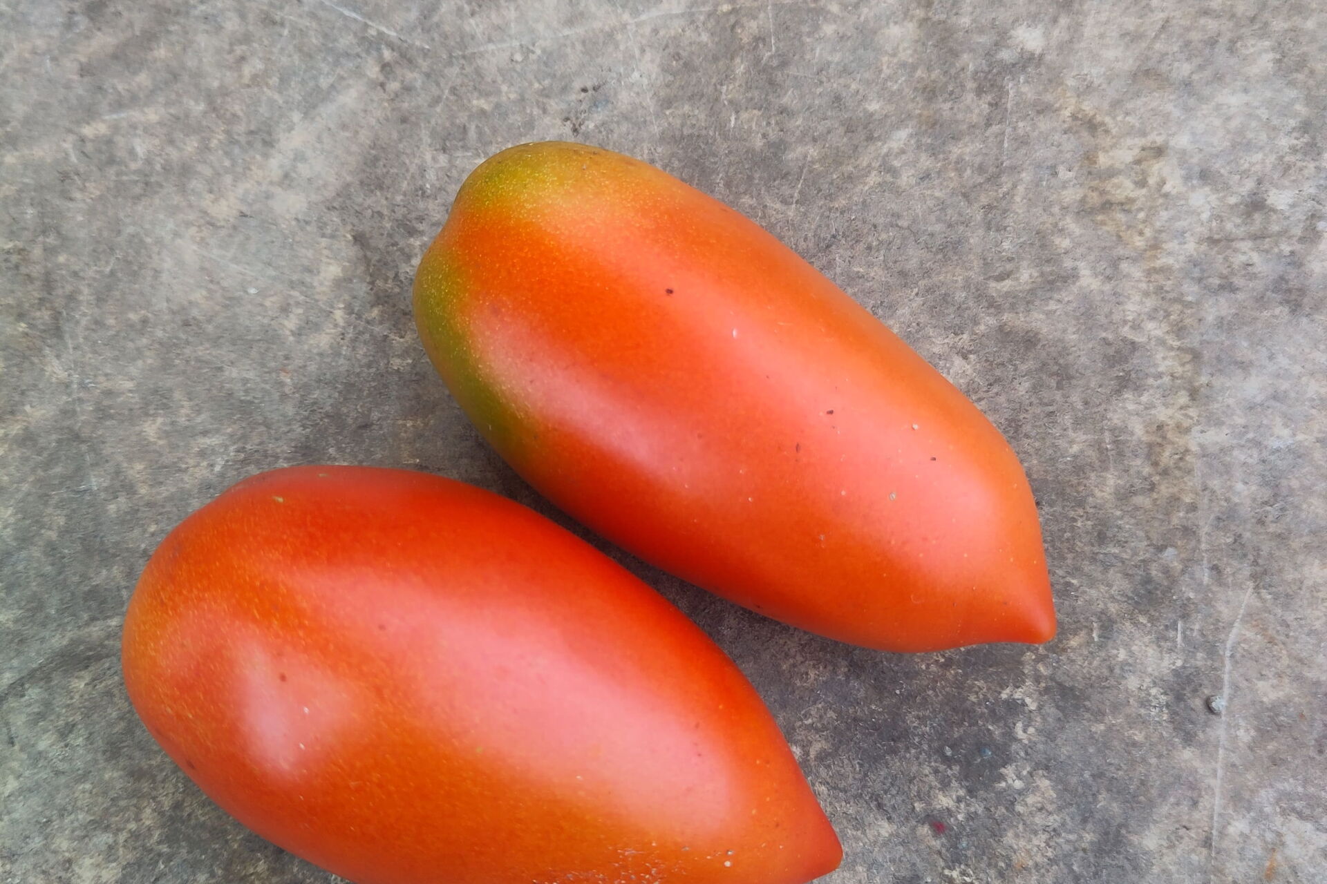 Große, robuste Eiertomate bzw. kleine Flaschentomate.